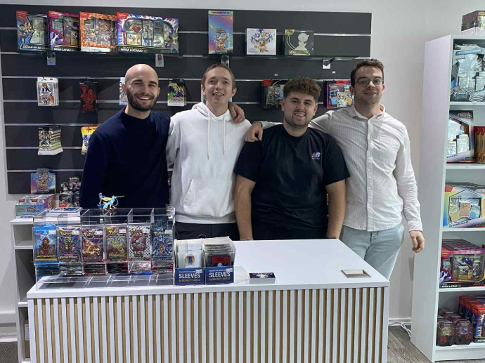 Le 8 novembre 2025, nous avons ouvert notre boutique physique, un espace pensé pour vivre et partager la passion des cartes à collectionner avec la vente de produits scellés, cartes à l’unité Pokémon, conseils personnalisés et concours réguliers pour faire vivre notre communauté.